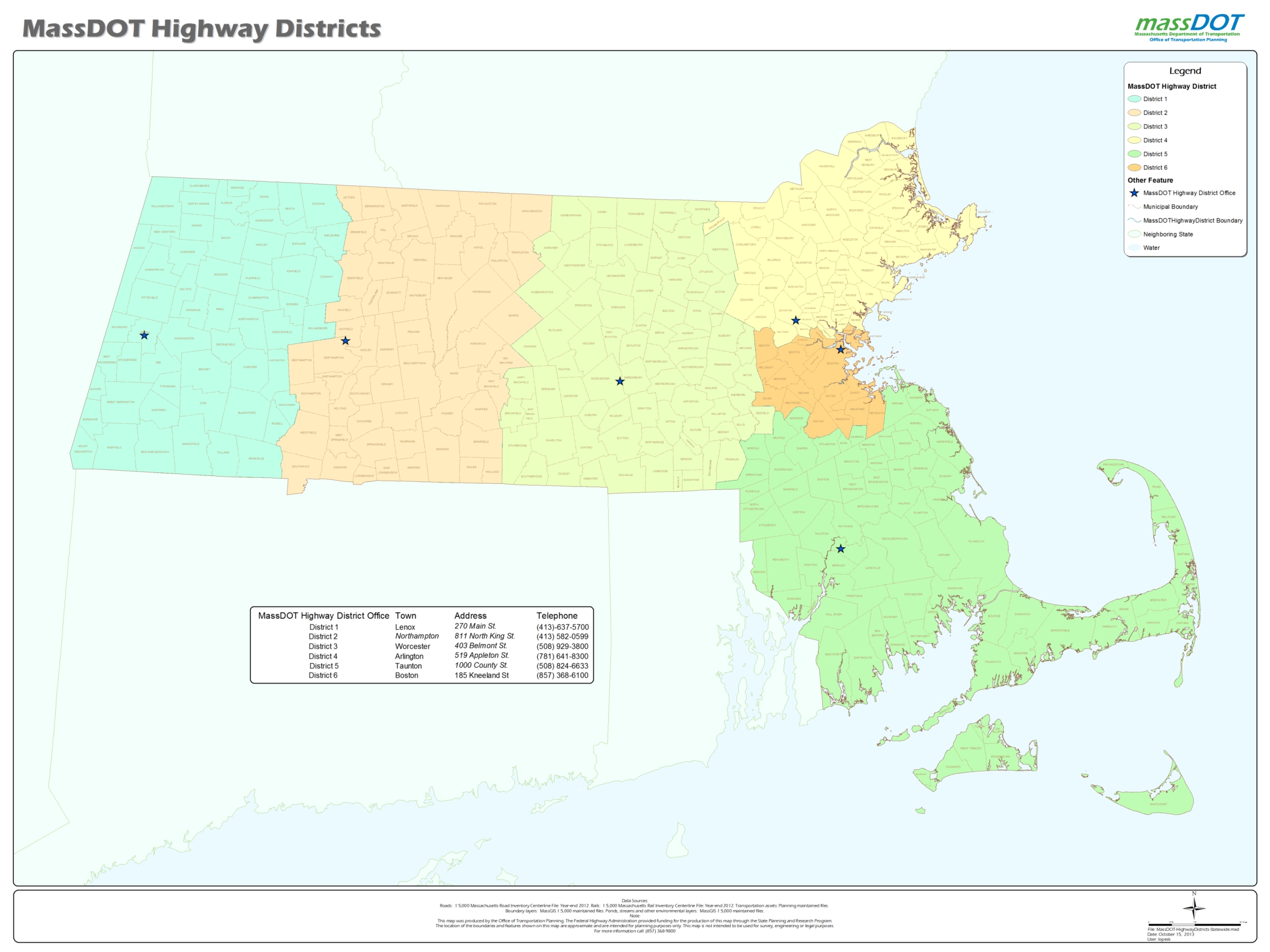 - MassDOT-Highway Division District: Identifies the MassDOT-Highway District responsible